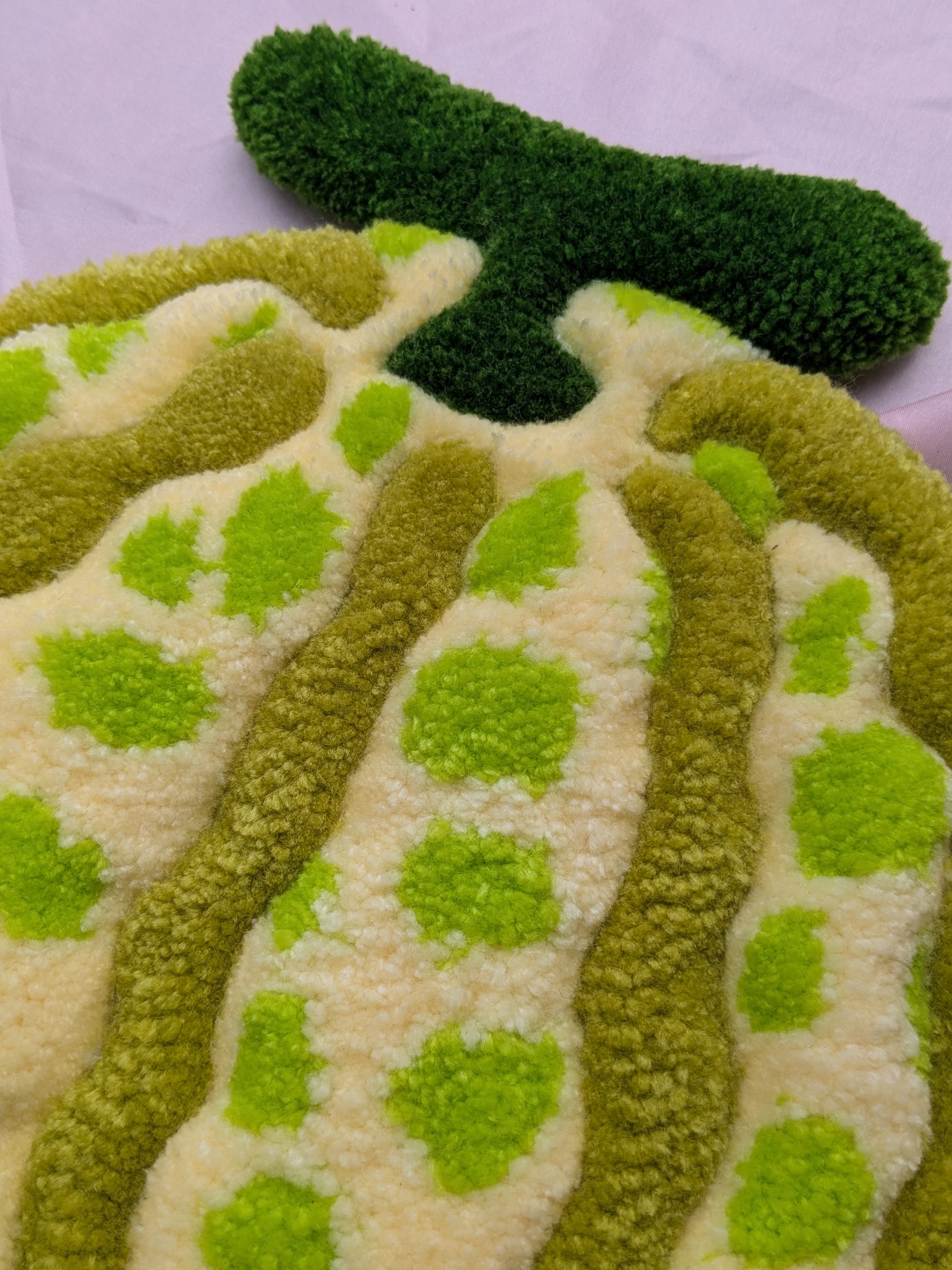 Tufted melon! Hook included on the back to display your tufted wall art in your home.