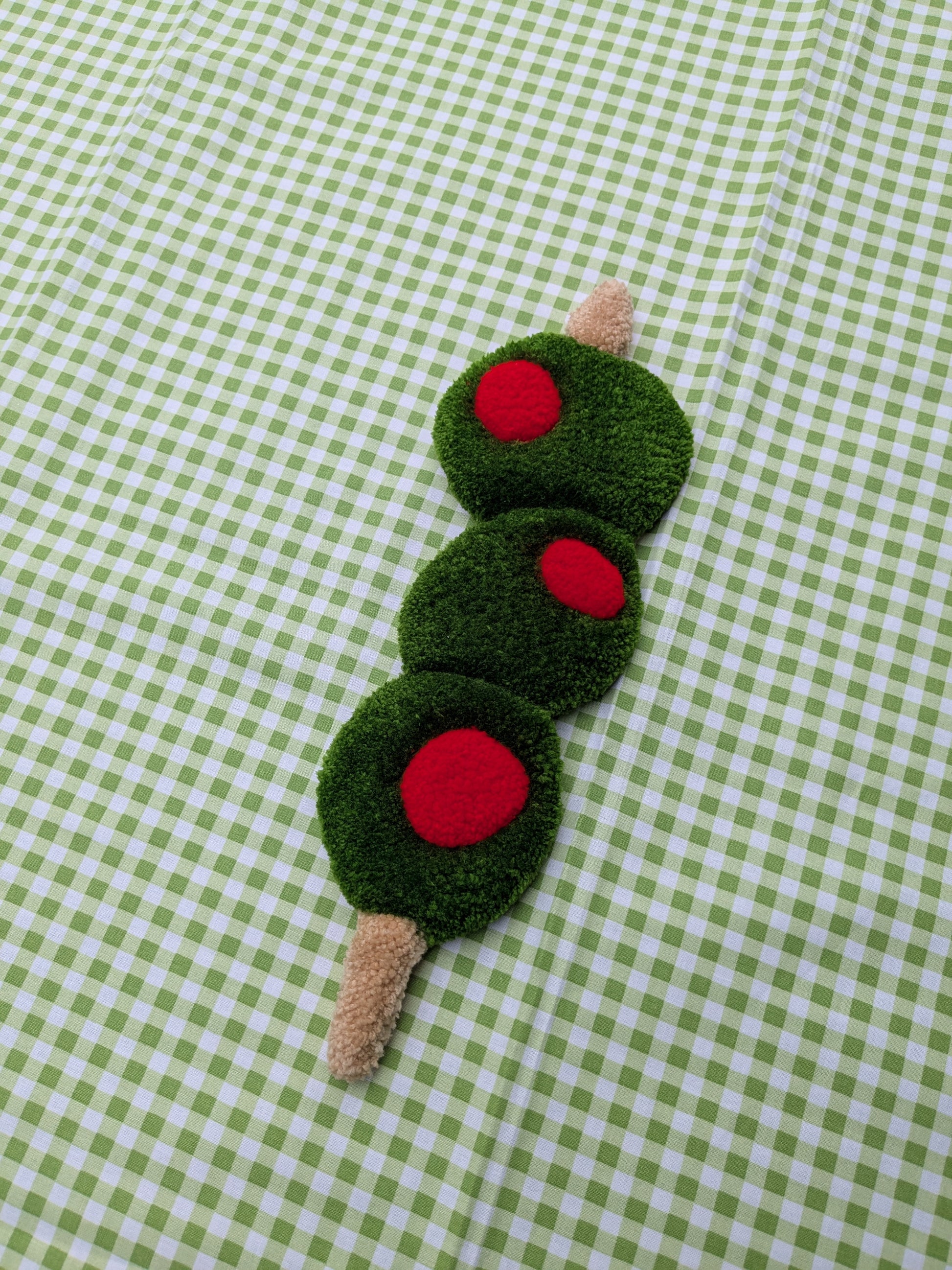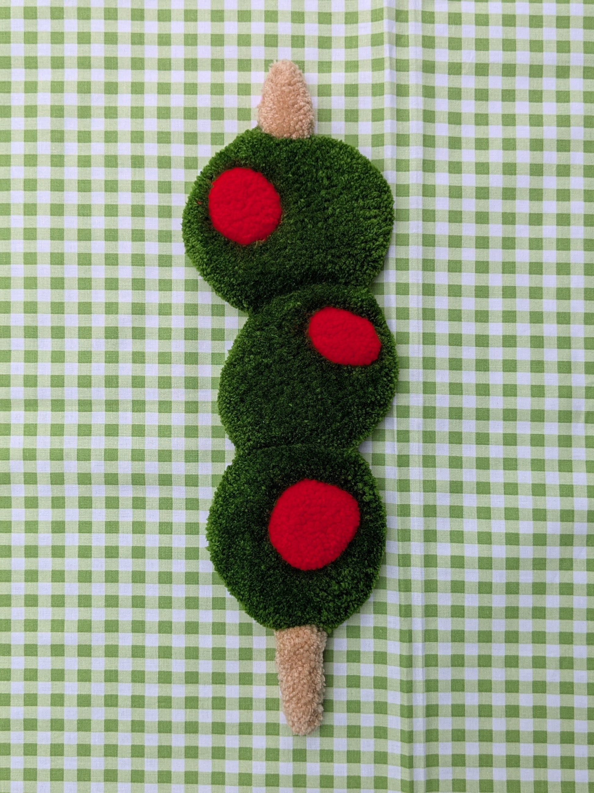 Tufted olives with hook on the back. Perfect as textile art in your kitchen, dining room or wherever you wish!